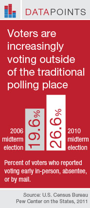 Recent data from the Census Bureau show that people are increasingly voting outside the traditional polling place, a shift that greatly impacts how election officials prepare and pay for elections.
