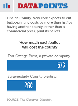 Oneida County, NY, expects to cut the cost of printing ballots by more than half by having another county print its ballots rather than continuing to use a commercial press.