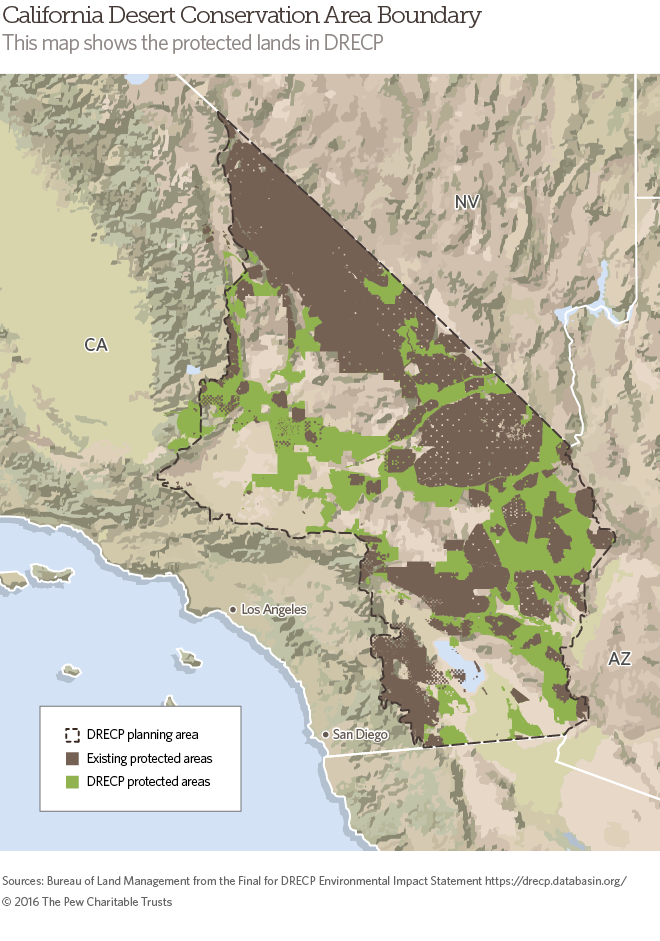 Update: On Feb. 2, 2018, the Bureau of Land Management (BLM) filed a notice of intent to reopen the Desert Renewable Energy Conservation Plan. The Pew Charitable Trusts issued a statement expressing disappointment that the BLM would revisit a plan that balances land protections with creation of renewable energy.