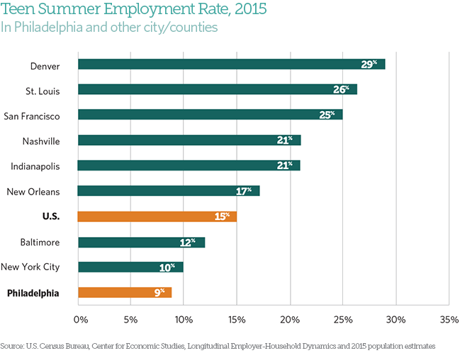 “Philadelphia leaders recognize the importance of increasing employment opportunities for young people,” says Stephanie Gambone, executive vice president of the Philadelphia Youth Network, which manages WorkReady. “Through WorkReady, Philadelphia has one of the more robust employer-funded summer jobs programs in the country, though it is not represented in the data.”