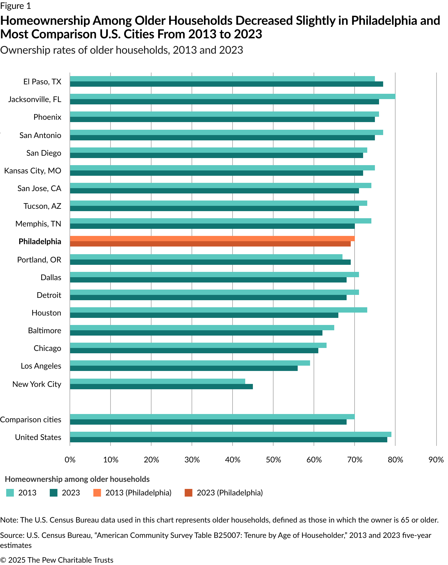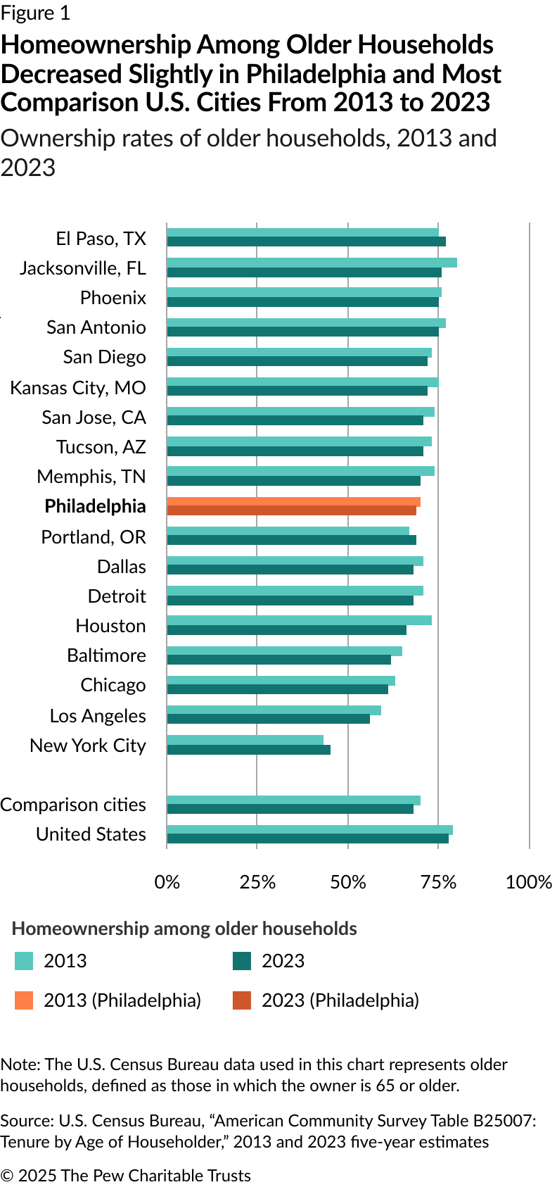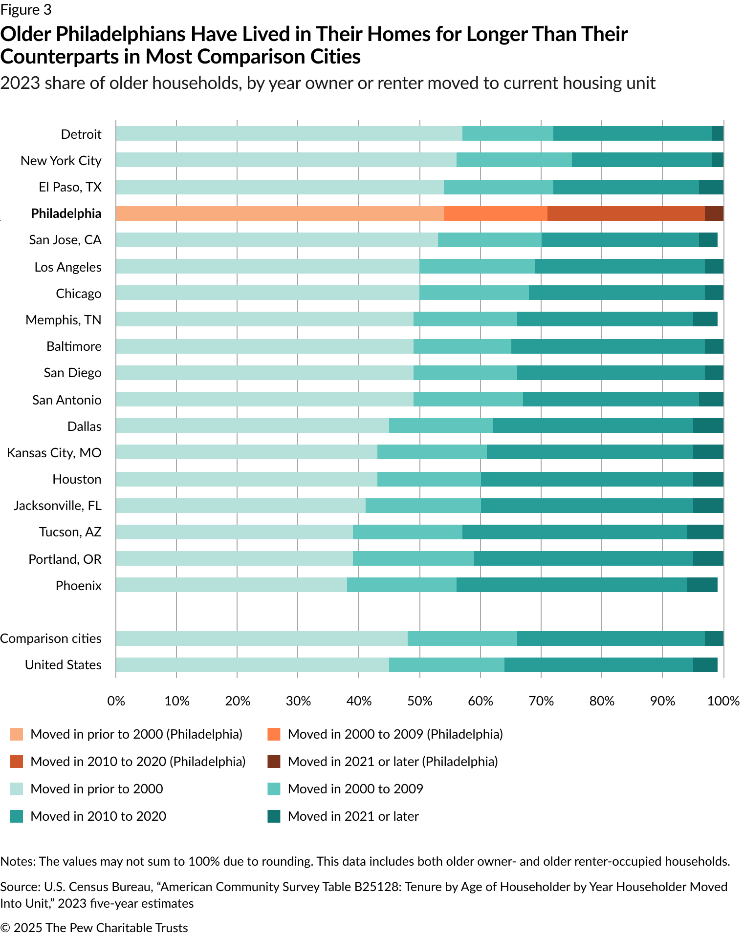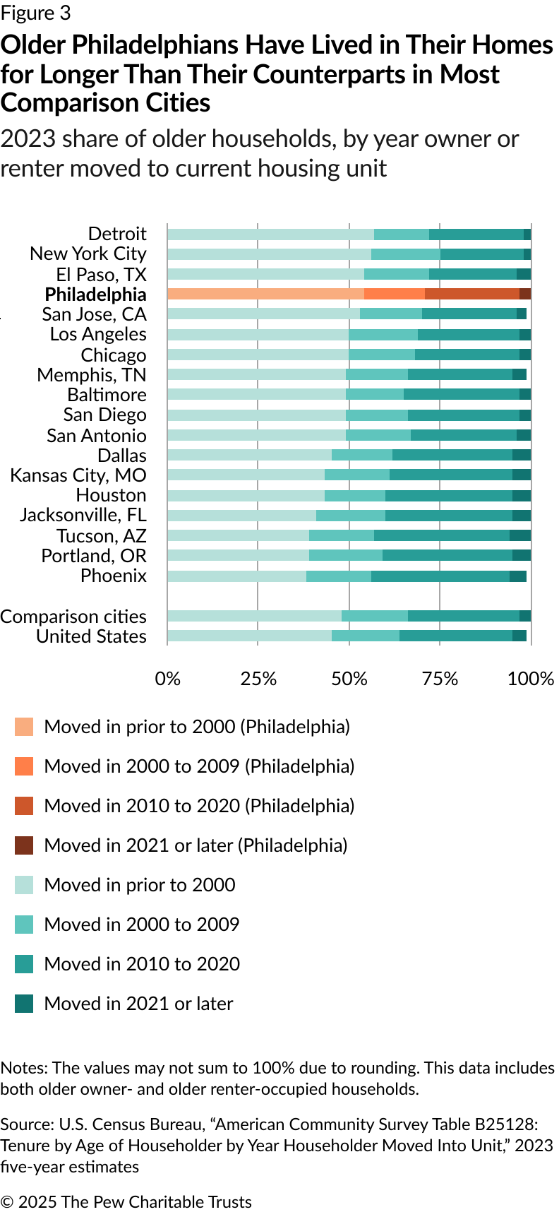 Older Philadelphians have lived in their homes longer than older residents in most comparison cities