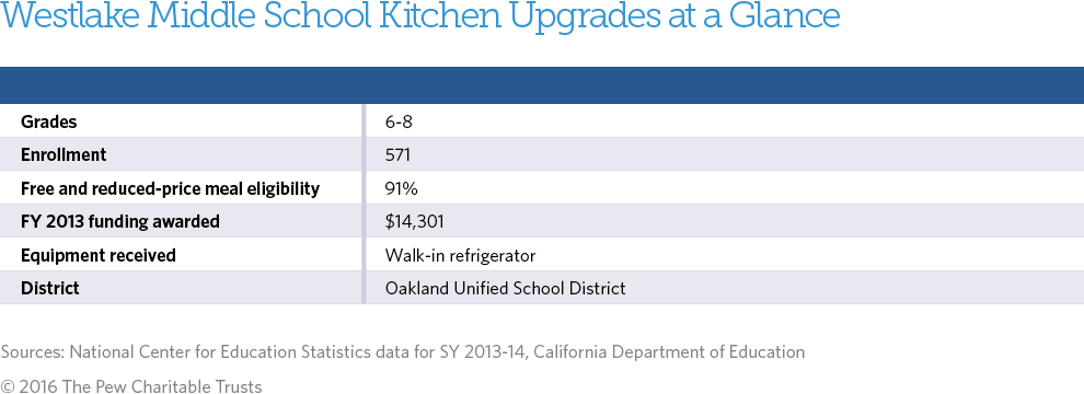 California’s Oakland Unified School District (OUSD) is recognized as a national leader for transforming its lunch program to provide healthier, locally sourced food to students. Through the district’s efforts, student demand for fresh fruits and vegetables increased enough that Westlake Middle School decided to use a U.S. Department of Agriculture kitchen equipment grant to buy a new walk-in refrigerator for all the produce.