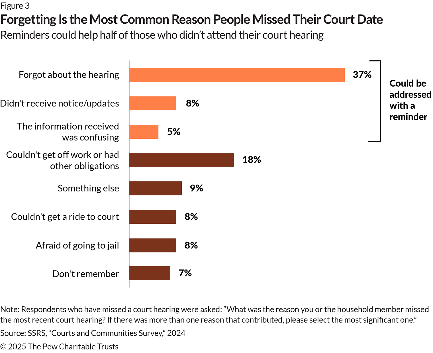 New research from The Pew Charitable Trusts sheds light on how people in the U.S. feel about court reminders and why people miss court. The results suggest that court reminders aren’t only effective—they’re popular, too.