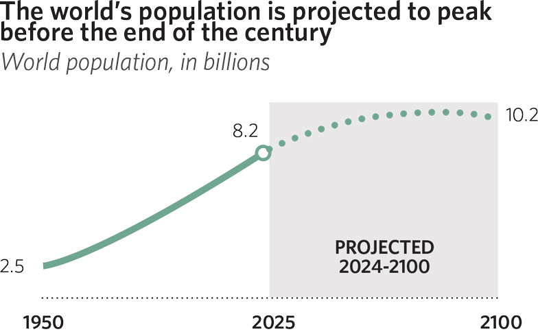 Although the world’s population more than tripled in the last 75 years, the U.N. expects it to grow by only about 1.9 billion between now and 2100 (from some 8.2 billion to 10.2 billion).