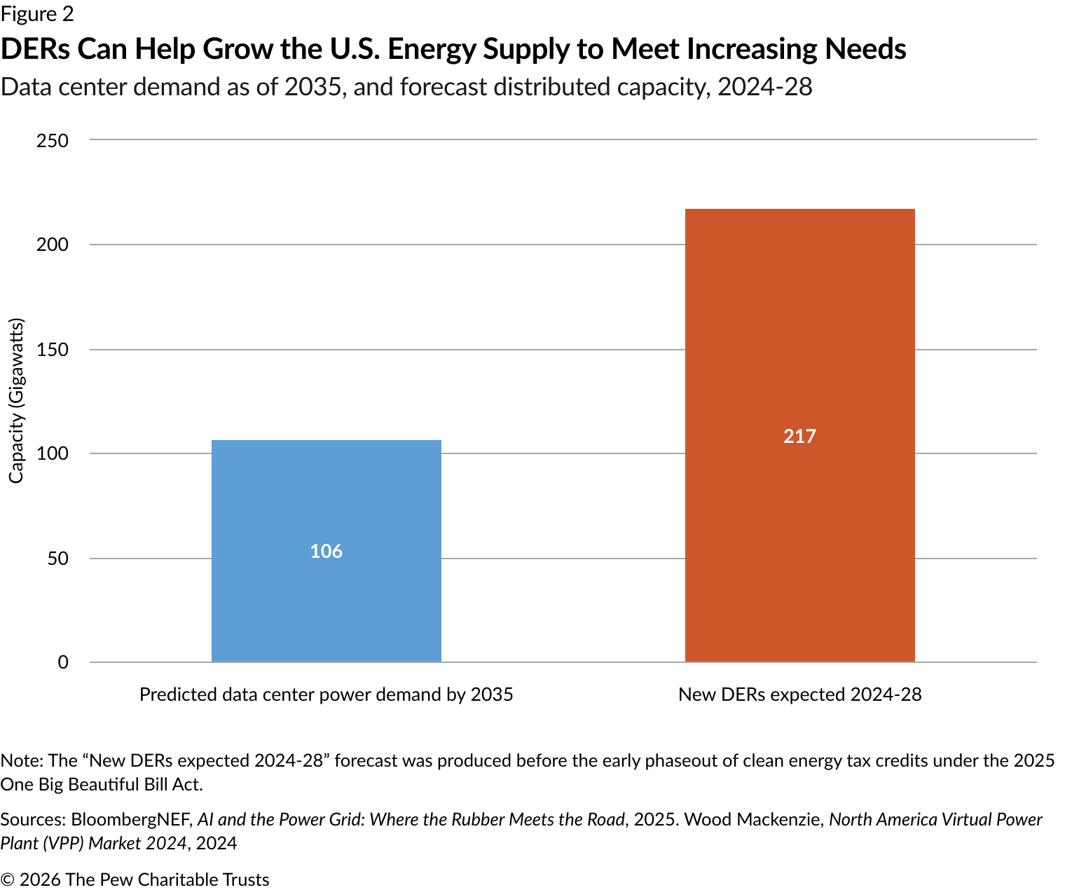 Research projects that the U.S. will add 217 gigawatts (GW) of DER capacity from 2024 to 2028. This growth almost equals the power generated by all U.S. coal-fired power plants and is more than twice the forecast additional power demand from data centers through 2035.15 (See Figure 2.) Although this means DERs have the potential to offset some data center power needs, the extent to which that potential is realized will ultimately depend on how much electricity those DERs can generate daily and how effectively they are integrated into the grid to maximize the energy resources they provide.