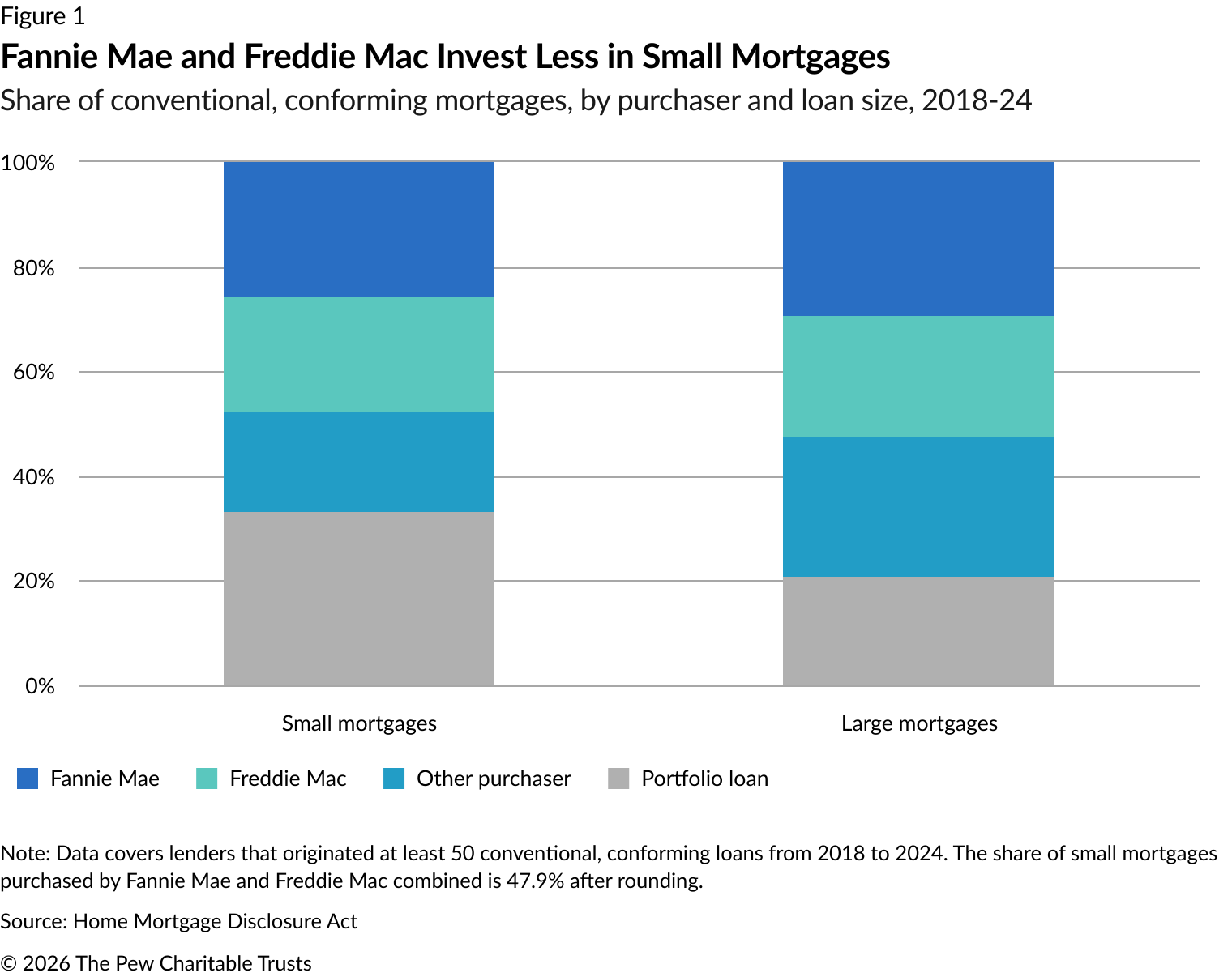- The Pew Charitable Trusts, "Small Mortgages Are Too Hard to Get," 2023, https://www.pewtrusts.org/en/research-and-analysis/issue-briefs/2023/06/small-mortgages-are-too-hard-to-get.